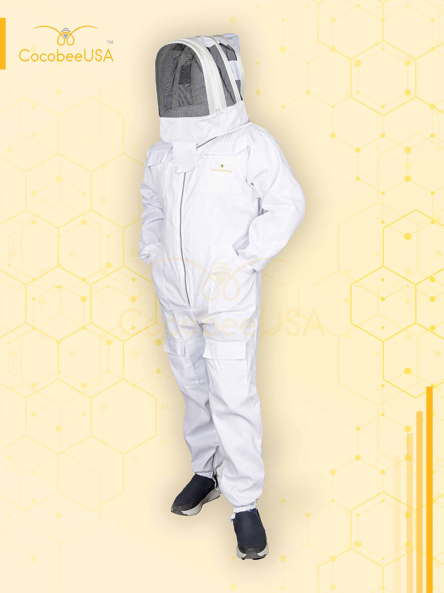 CocobeeUSA Professional Beekeeping Suit Beekeepers White Cotton Suit with Fencing Veil Hood with free Gloves.